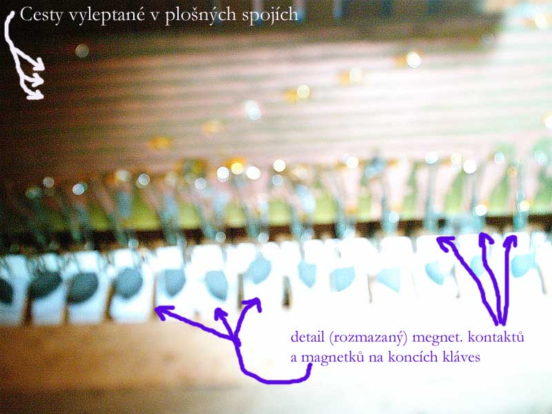 každé klávese na plošný spoj napájel magnetická relé. Za každým magnetickým